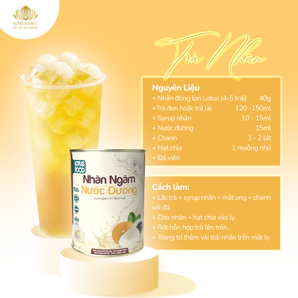 Trà nhãn là lựa chọn quen thuộc nhưng luôn có sức hút nhờ vị thanh mát, dễ uống. Khi kết hợp nhãn ngâm nước đường Lotus HFC cùng trà, món nước trở nên đậm hương hơn mà vẫn giữ được sự tự nhiên.