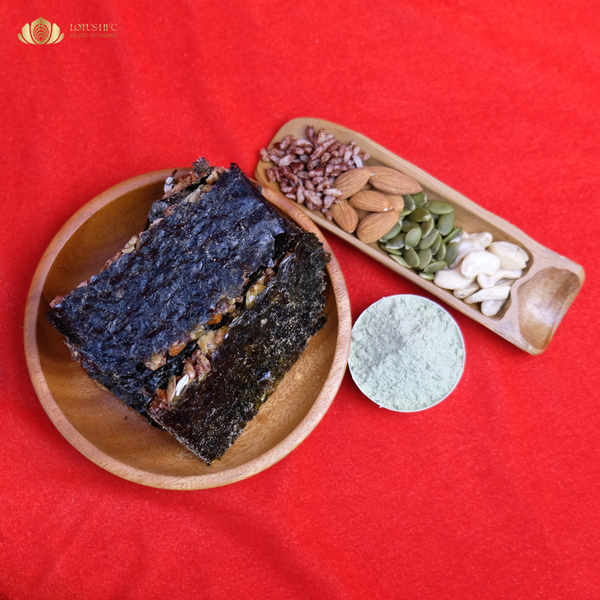 Ngược lại, bánh kẹp rong biển Lotus HFC được nướng hoặc sấy, hạn chế tối đa việc sử dụng dầu chiên, giúp giữ trọn hương vị tự nhiên của rong biển, gạo lứt và các loại hạt. Nhờ phương pháp chế biến này, bánh có độ giòn vừa phải nhưng không gây cảm giác ngấy, đồng thời dễ tiêu hóa hơn so với snack chiên truyền thống.