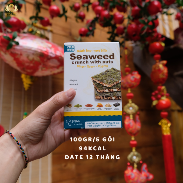 Điểm đặc trưng của bánh kẹp rong biển vị gừng Lotus HFC nằm ở hậu vị gừng ấm nhẹ, giúp cân bằng vị béo của hạt, hỗ trợ tiêu hóa, giảm cảm giác ngấy khi ăn. Nhờ đó, bánh dễ ăn và ấm bụng hơn so với nhiều loại snack thông thường.