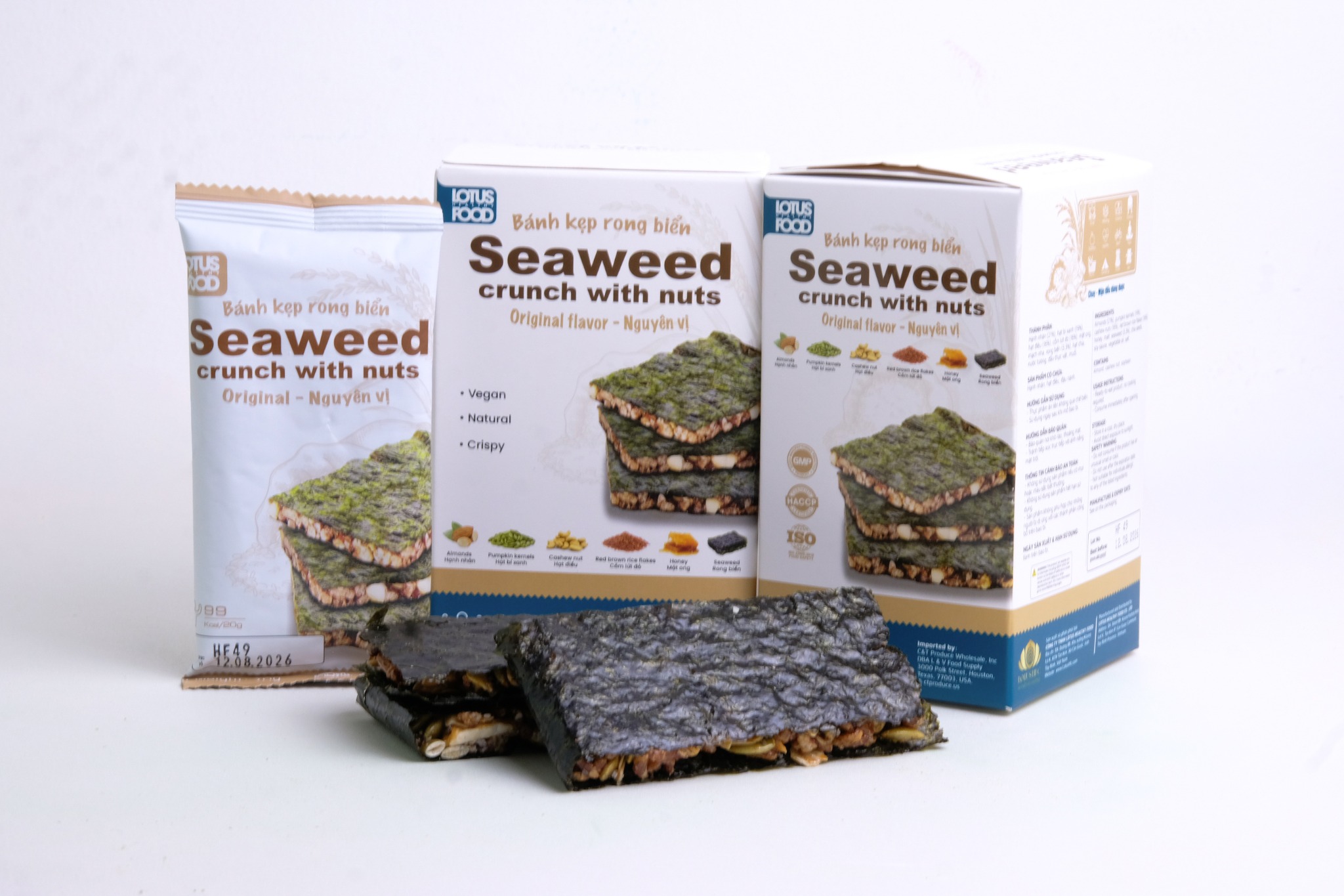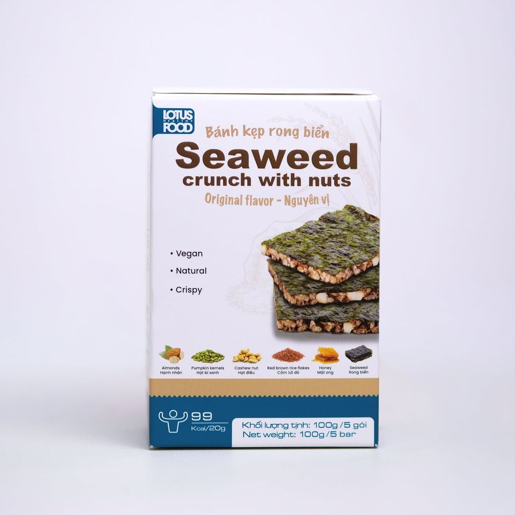 | Đặc điểm | Sự kết hợp giữa bánh kẹp giòn nhẹ và rong biển mặn dịu tự nhiên, tạo nên hương vị thuần nguyên bản, hài hòa và dễ dùng. |