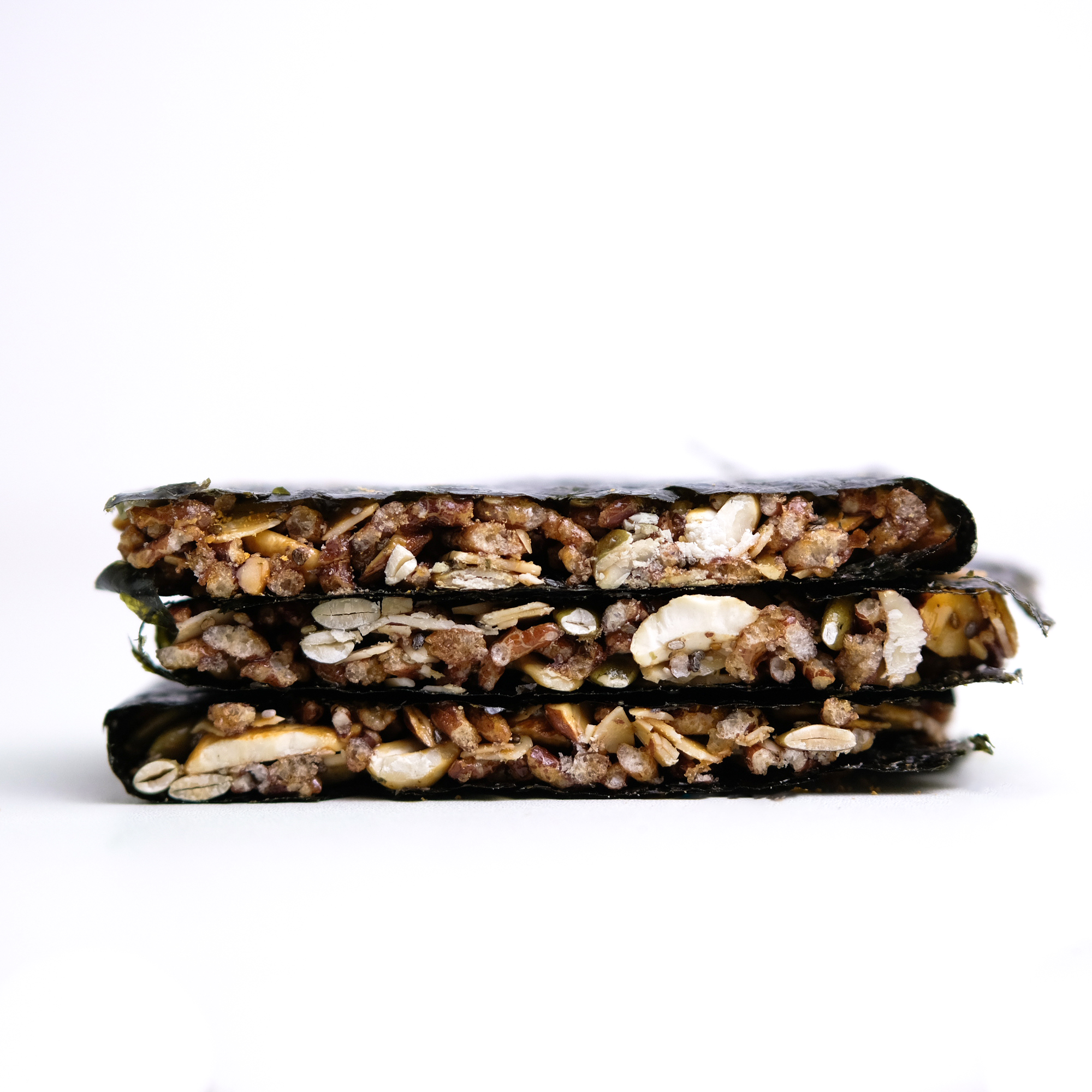 | Thành phần | Hạnh nhân (21%), hạt bí xanh (19%), hạt điều (16%), cốm lứt đỏ (16%), mật ong, mạch nha, rong biển (3.3%), hạt chia, nước tương, dầu thực vật, muối. |
