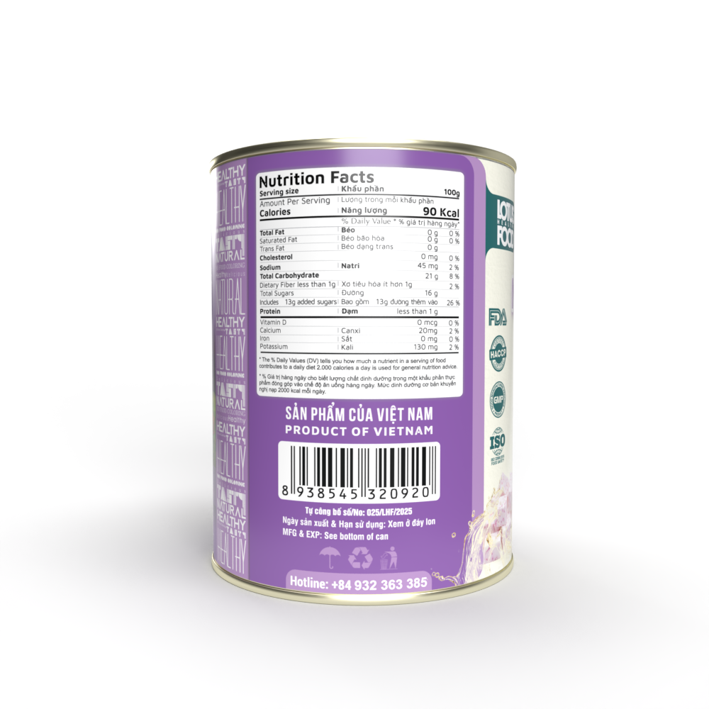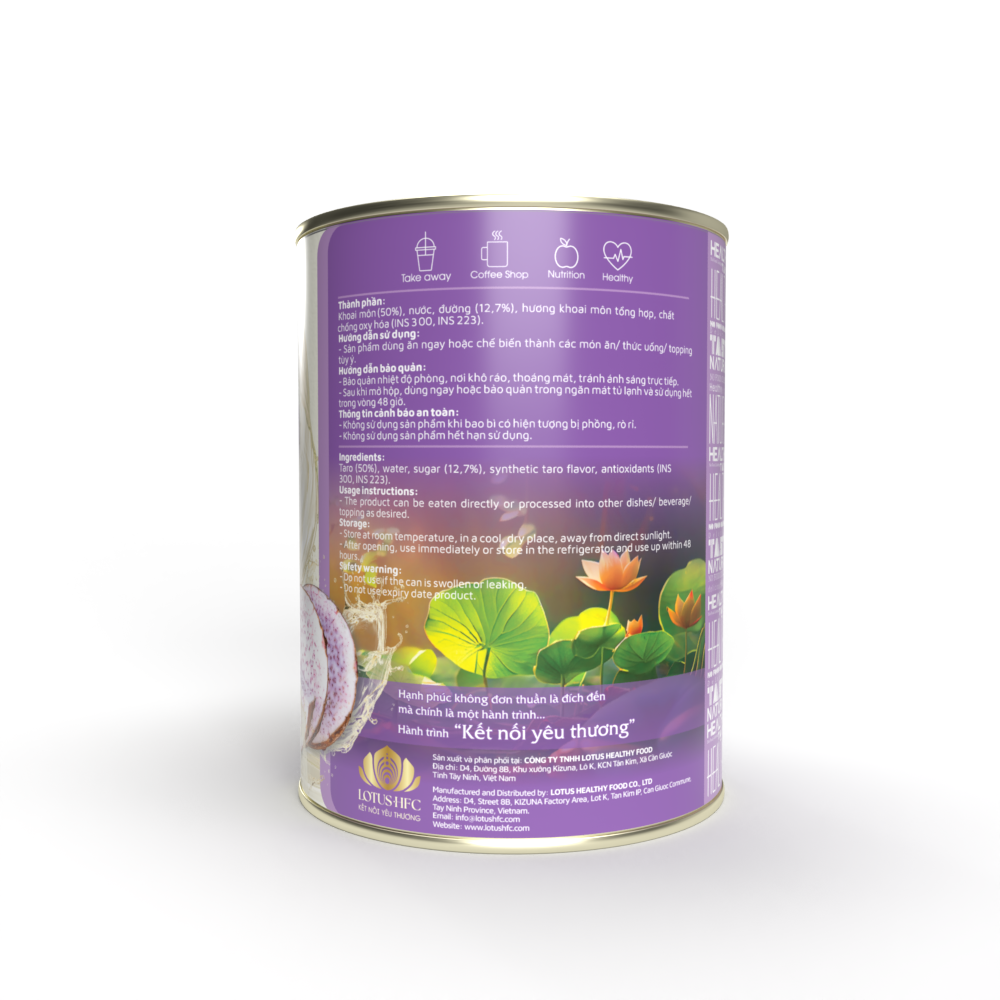 | Ứng dụng | Sản xuất sản phẩm Khoai môn nước đường Lotus Healthy Food – dùng trực tiếp hoặc kết hợp trong chè, sữa chua, trà sữa, món tráng miệng và topping đồ uống |